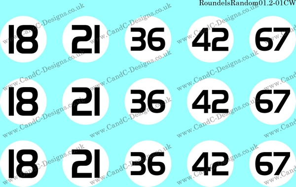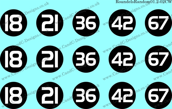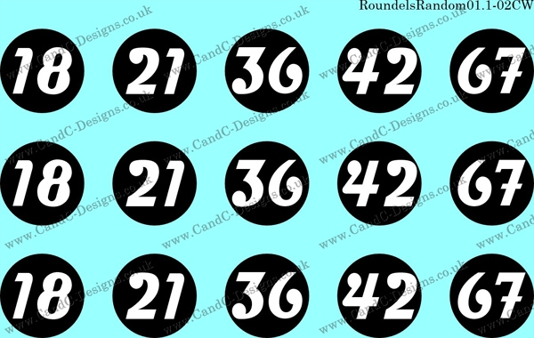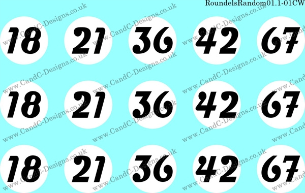Number decal sheets These pages contain race number decal sheets Colours, race numbers and fonts can be modified on request. CandC-NU001B CandC-NU002B CandC-NU003W CandC-NU004W CandC-NU005W CandC-NU006W CandC-NU007B CandC-NU008B CandC-NU009W CandC-NU010W CandC-NU011W CandC-NU012W NumberSquaresRandom01-01CW Roundels1-501-01CW Roundels1-501-02CW Roundels1-501.1-01CW Roundels1-501.1-02CW Roundels1-501.2-01CW Roundels1-501.2-02CW Roundels6-1001-01CW Roundels6-1001-02CW Roundels6-1001.1-01CW Roundels6-1001.1-02CW Roundels6-1001.2-01CW Roundels6-1001.2-02CW RoundelsRandom01-01CW RoundelsRandom01-02CW RoundelsRandom01.1-01CW RoundelsRandom01.1-02CW RoundelsRandom01.2-01CW RoundelsRandom01.2-02CW View Slideshow